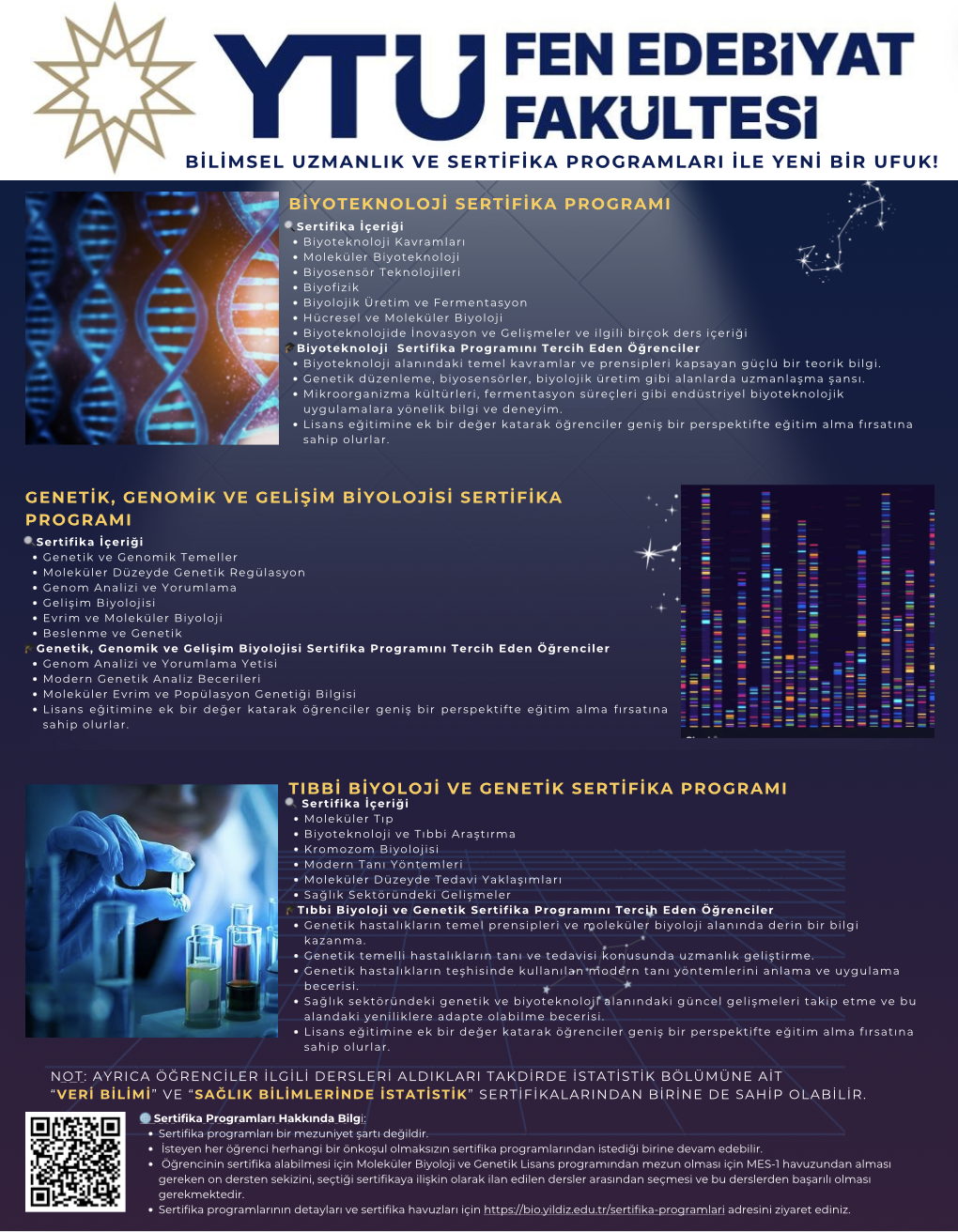 Genetik, Genomik ve Gelişim Biyolojisi Sertifika Programı (İstihdam alanları: üniversiteler ve kamu araştırma enstitüleri, genetik tanı merkezleri ile kamu ve özel sektör eğitim ve Ar-Ge kurum ve kuruluşları)