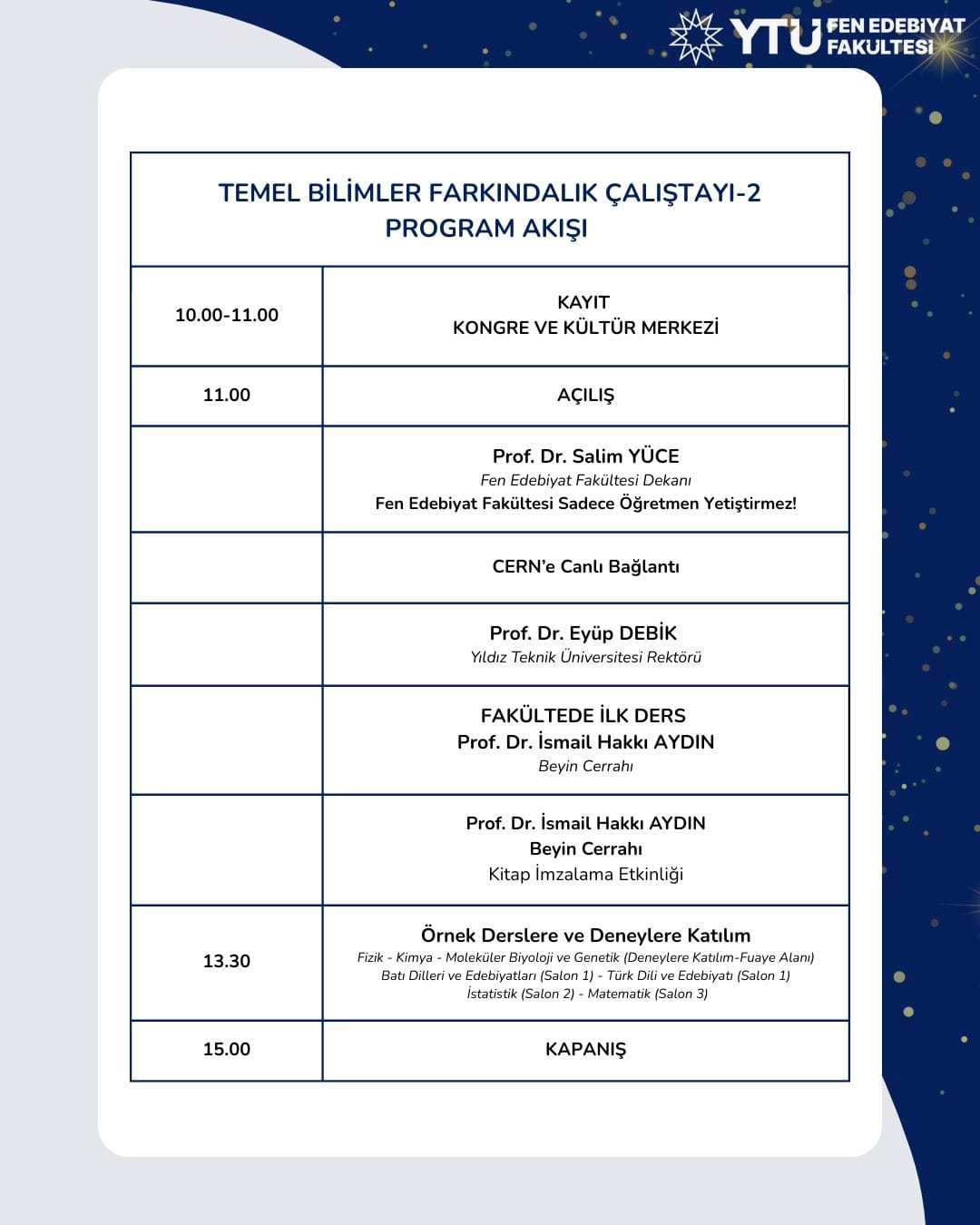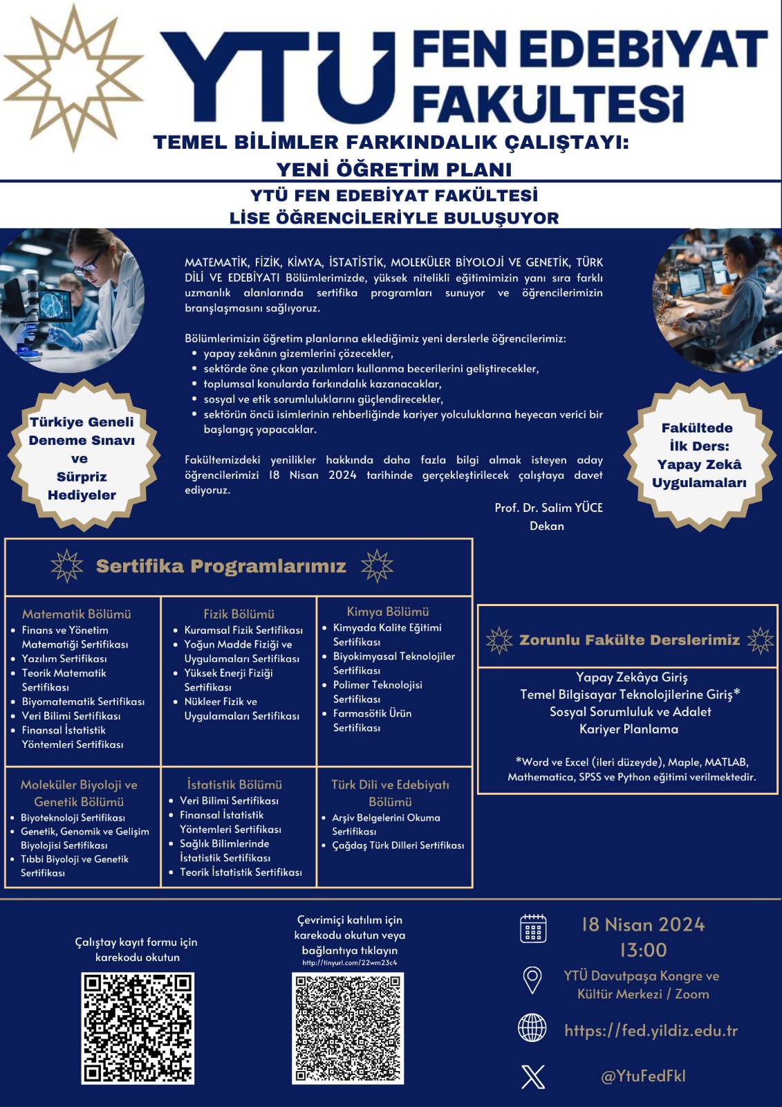 "Fen-Edebiyat Fakülteleri sadece öğretmen yetiştirmez" sloganı temeliyle gerçekleştirilen bu çalıştayda; misafir öğrencilerin Matematik, Fizik, Kimya, İstatistik, Moleküler Biyoloji ve Genetik, Türk Dili ve Edebiyatı bölümlerimizdeki ders ve laboratuvarlara katılımı ve eşsiz yeşil kampüsümüzü keşfederek "üniversite öğrencisi olarak" bir gün deneyimlemeleri sağlanmıştır. Ayrıca, aday öğrencilere fakültemiz bölümlerini kazanmaları halinde bölüm bazında alacakları derslerle, temel bilimlerin öncelikli konularında ve gelişen teknolojilerde branşlaşmalarını sağlayan sertifika programlarımız ve bireylerin bilgi, beceri ve sosyal değerlerinin geliştirilmesini hedefleyen "Yapay Zekaya Giriş", "Temel Bilgisayar Teknolojilerine Giriş", "Sosyal Sorumluluk ve Adalet", "Kariyer Planlama" fakülte zorunlu dersleri tanıtılmıştır.